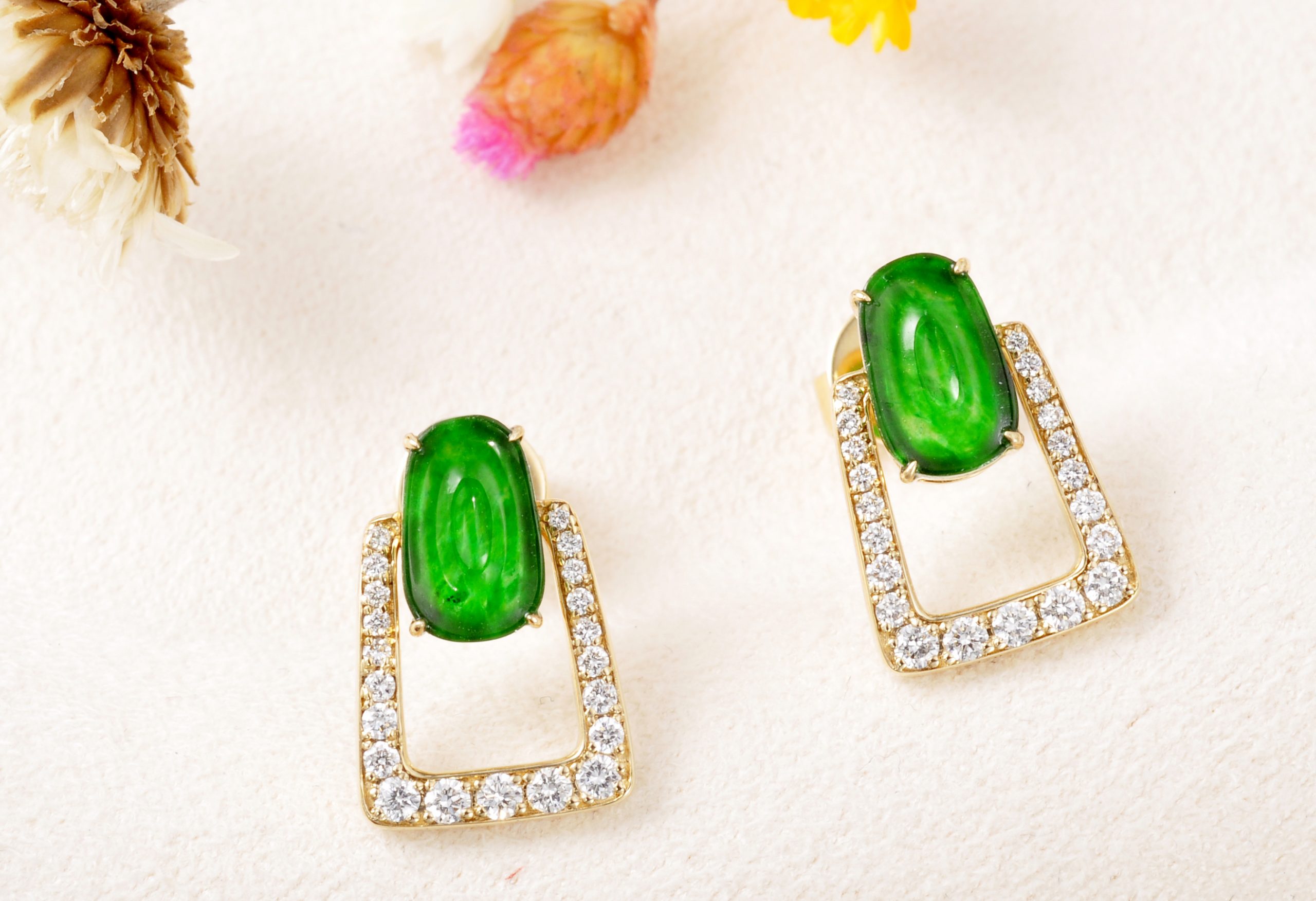 18K金翡翠钻石耳环