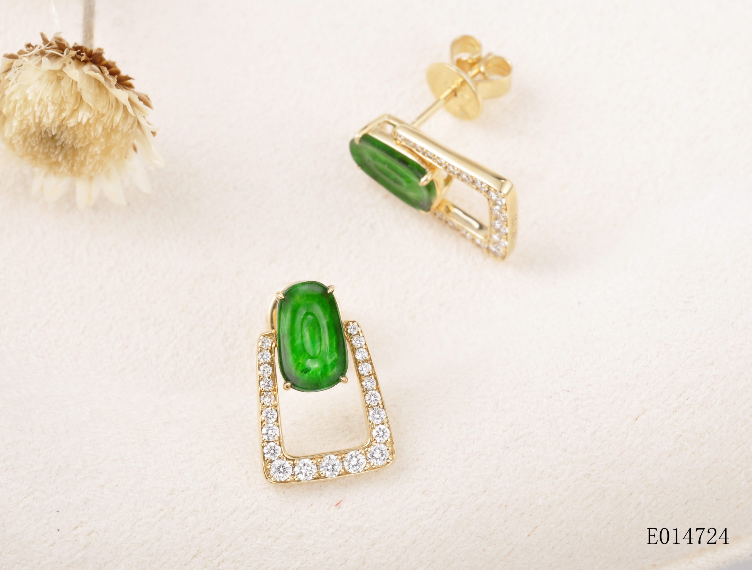 18KY Gold Jade and Diamond Earring