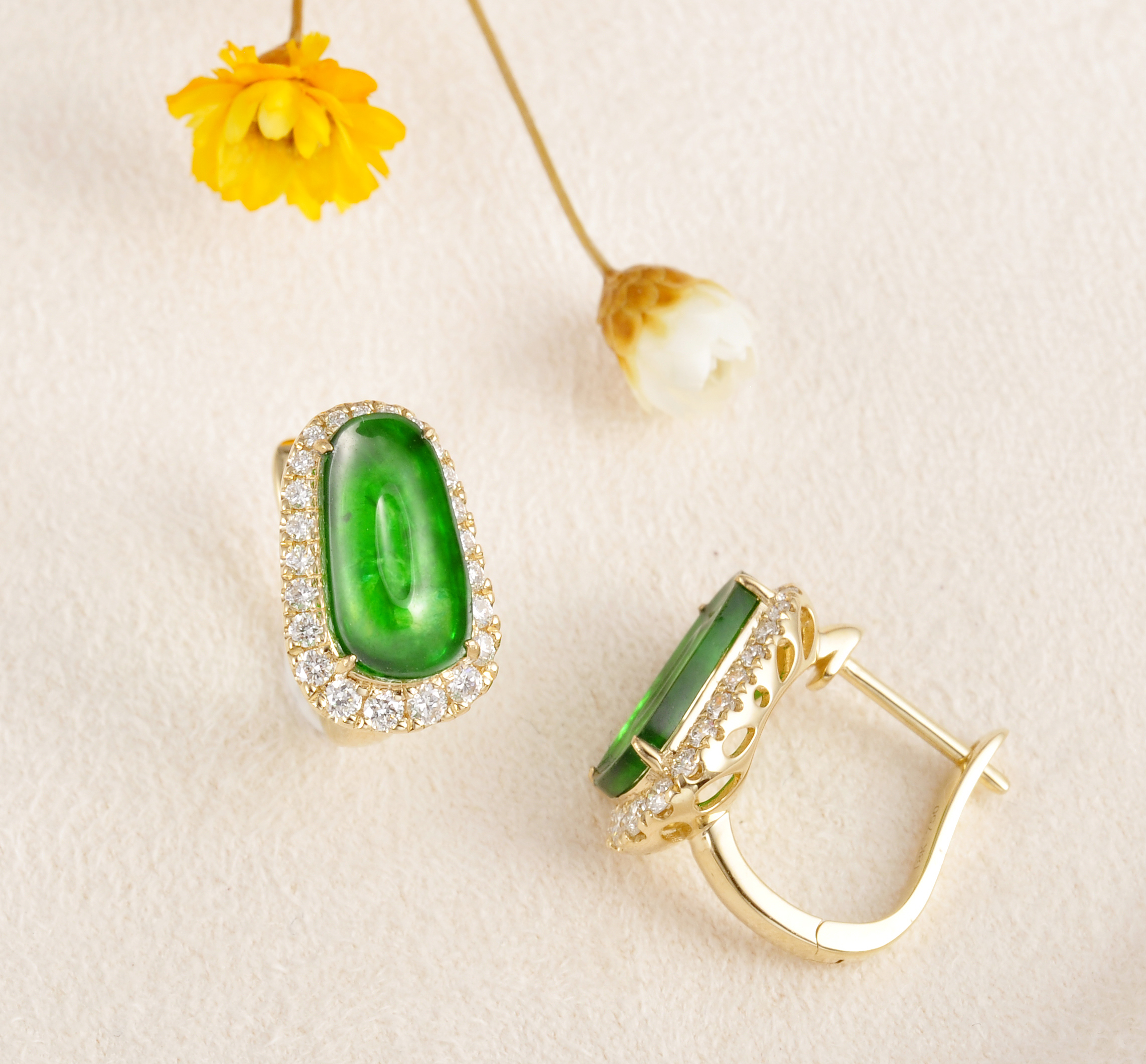 18K金翡翠钻石耳环