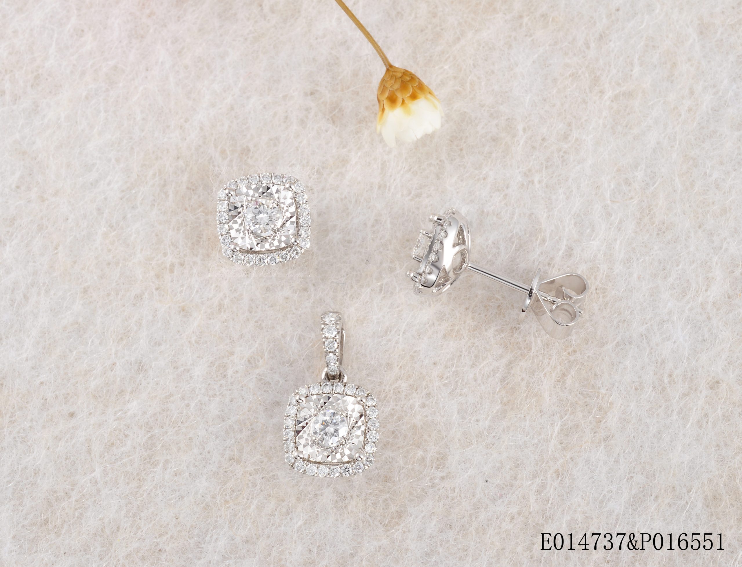 18KW Gold Diamond Earring and Pendant Set