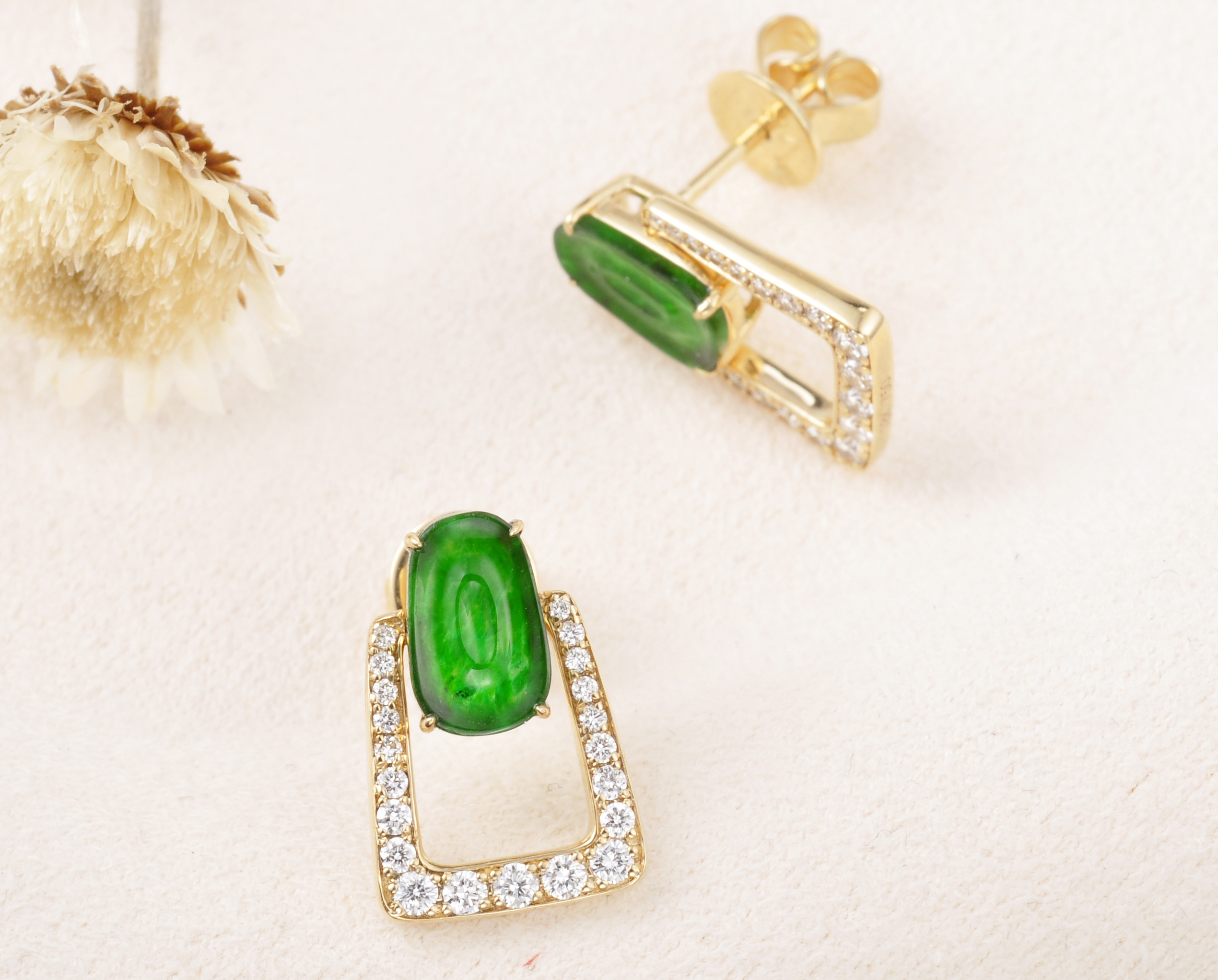 18K金翡翠钻石耳环